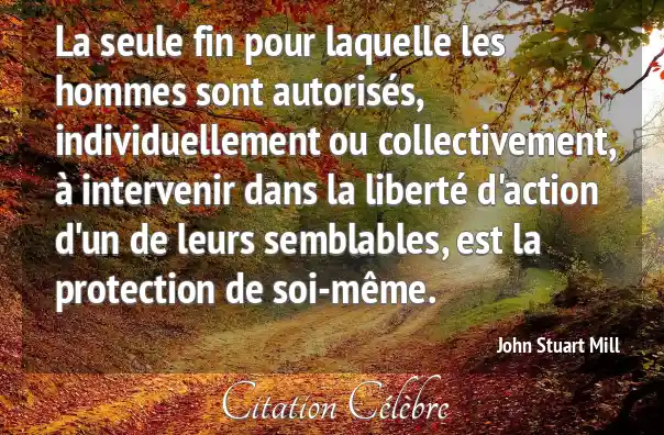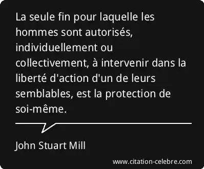 La seule fin pour laquelle les hommes sont autorisés, individuellement ou collectivement, à intervenir dans la liberté d'action d'un de leurs semblables, est la protection de soi-même.