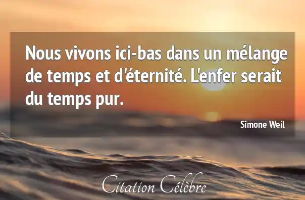 Nous vivons ici-bas dans un mélange de temps et d'éternité. L'enfer serait du temps pur.