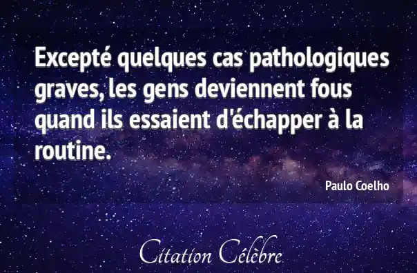 Excepté quelques cas pathologiques graves, les gens deviennent fous quand ils essaient d'échapper à la routine.