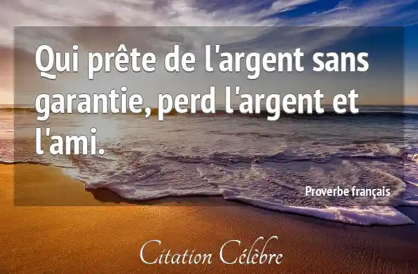 Qui prête de l'argent sans garantie, perd l'argent et l'ami.