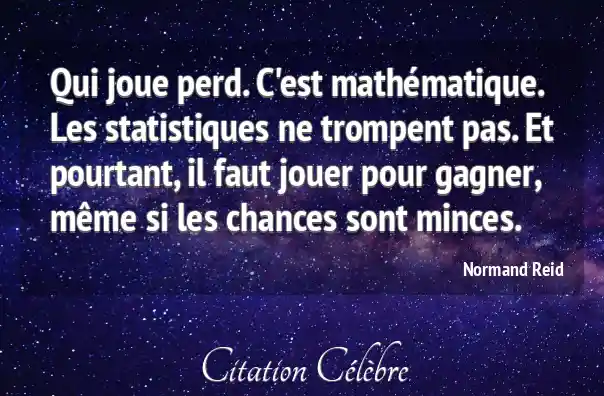 Qui joue perd. C'est mathématique. Les statistiques ne trompent pas. Et pourtant, il faut jouer pour gagner, même si les chances sont minces.