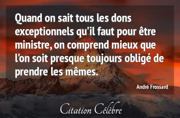 Quand on sait tous les dons exceptionnels qu'il faut pour être ministre, on comprend mieux que l'on soit presque toujours obligé de prendre les mêmes.