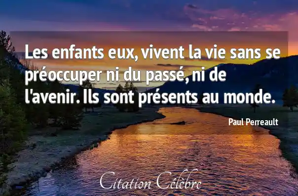 Les enfants eux, vivent la vie sans se préoccuper ni du passé, ni de l'avenir. Ils sont présents au monde.