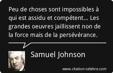 Peu de choses sont impossibles à qui est assidu et compétent... Les grandes oeuvres jaillissent non de la force mais de la persévérance.