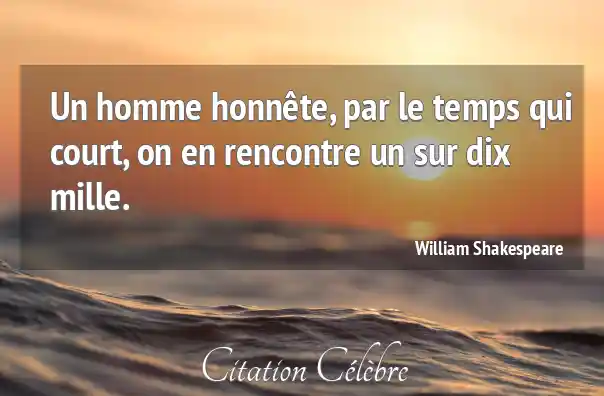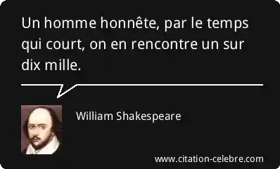 Un homme honnête, par le temps qui court, on en rencontre un sur dix mille.