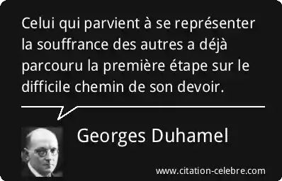 Celui qui parvient à se représenter la souffrance des autres a déjà parcouru la première étape sur le difficile chemin de son devoir.