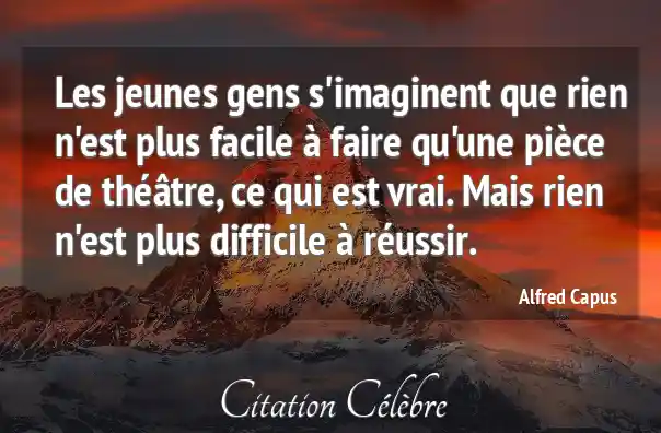 Les jeunes gens s'imaginent que rien n'est plus facile à faire qu'une pièce de théâtre, ce qui est vrai. Mais rien n'est plus difficile à réussir.