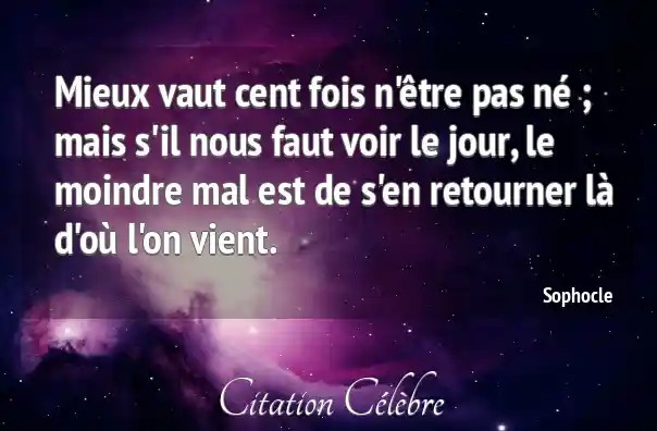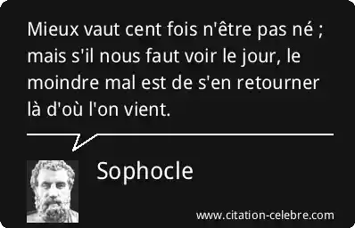 Citation Sophocle jour : Mieux vaut cent fois n'être pas né ; mais s'il...