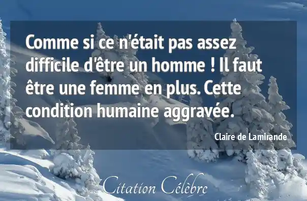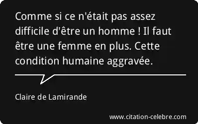 Comme si ce n'était pas assez difficile d'être un homme ! Il faut être une femme en plus. Cette condition humaine aggravée.