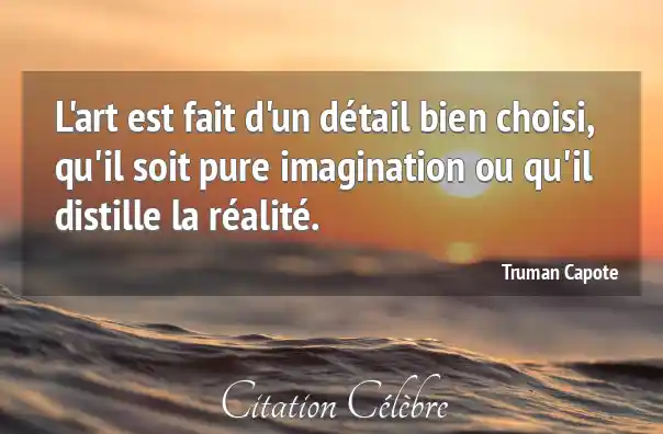 L'art est fait d'un détail bien choisi, qu'il soit pure imagination ou qu'il distille la réalité.