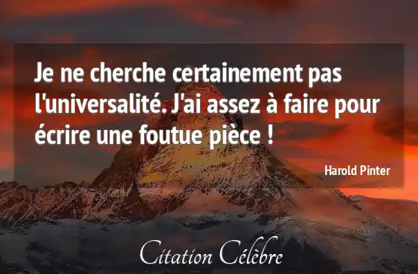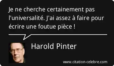 Je ne cherche certainement pas l'universalité. J'ai assez à faire pour écrire une foutue pièce !