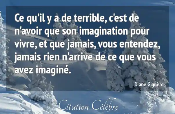 Ce qu'il y a de terrible, c'est de n'avoir que son imagination pour vivre, et que jamais, vous entendez, jamais rien n'arrive de ce que vous avez imaginé.