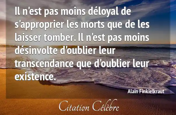 Il n'est pas moins déloyal de s'approprier les morts que de les laisser tomber. Il n'est pas moins désinvolte d'oublier leur transcendance que d'oublier leur existence.