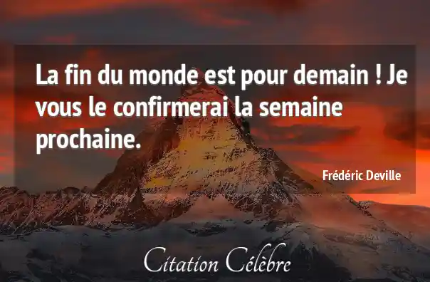 La fin du monde est pour demain ! Je vous le confirmerai la semaine prochaine.