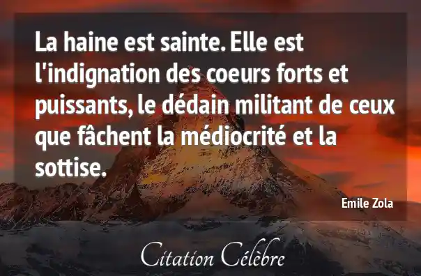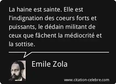 La haine est sainte. Elle est l'indignation des coeurs forts et puissants, le dédain militant de ceux que fâchent la médiocrité et la sottise.