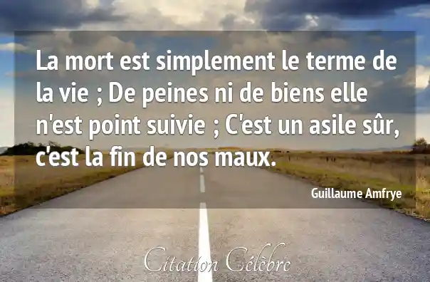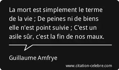 La mort est simplement le terme de la vie ; De peines ni de biens elle n'est point suivie ; C'est un asile sûr, c'est la fin de nos maux.