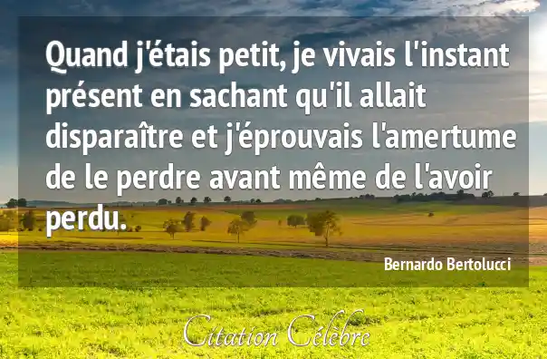 Quand j'étais petit, je vivais l'instant présent en sachant qu'il allait disparaître et j'éprouvais l'amertume de le perdre avant même de l'avoir perdu.