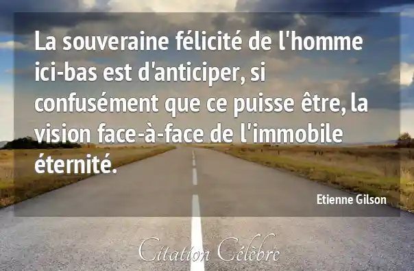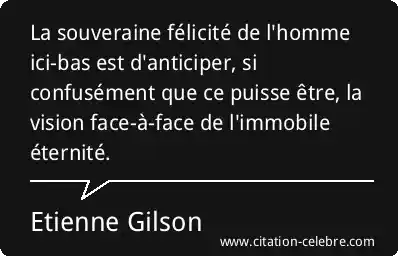 La souveraine félicité de l'homme ici-bas est d'anticiper, si confusément que ce puisse être, la vision face-à-face de l'immobile éternité.