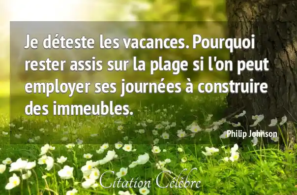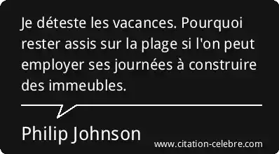 Je déteste les vacances. Pourquoi rester assis sur la plage si l'on peut employer ses journées à construire des immeubles.