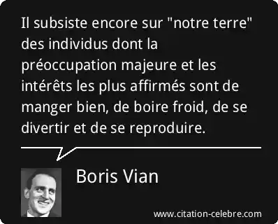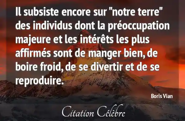 Il subsiste encore sur "notre terre" des individus dont la préoccupation majeure et les intérêts les plus affirmés sont de manger bien, de boire froid, de se divertir et de se reproduire.