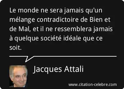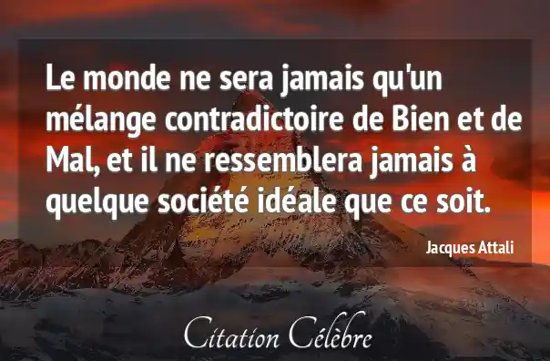 Le monde ne sera jamais qu'un mélange contradictoire de Bien et de Mal, et il ne ressemblera jamais à quelque société idéale que ce soit.