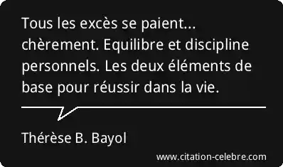 Tous les excès se paient... chèrement. Equilibre et discipline personnels. Les deux éléments de base pour réussir dans la vie.
