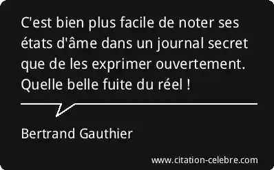 C'est bien plus facile de noter ses états d'âme dans un journal secret que de les exprimer ouvertement. Quelle belle fuite du réel !