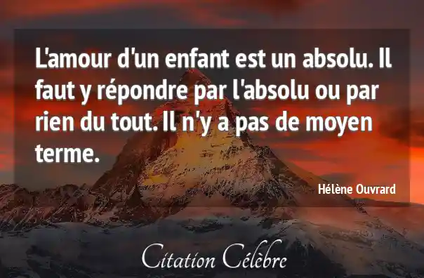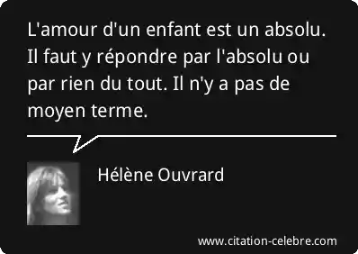 L'amour d'un enfant est un absolu. Il faut y répondre par l'absolu ou par rien du tout. Il n'y a pas de moyen terme.