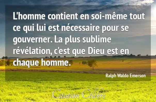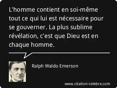 L'homme contient en soi-même tout ce qui lui est nécessaire pour se gouverner. La plus sublime révélation, c'est que Dieu est en chaque homme.
