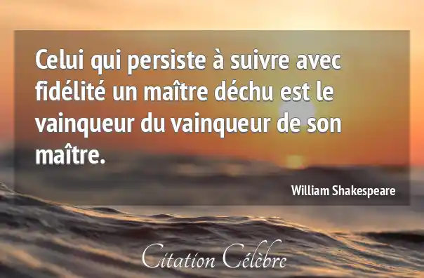 Celui qui persiste à suivre avec fidélité un maître déchu est le vainqueur du vainqueur de son maître.