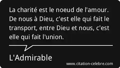 La charité est le noeud de l'amour. De nous à Dieu, c'est elle qui fait le transport, entre Dieu et nous, c'est elle qui fait l'union.