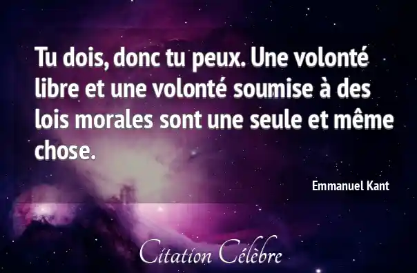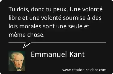 Tu dois, donc tu peux. Une volonté libre et une volonté soumise à des lois morales sont une seule et même chose.