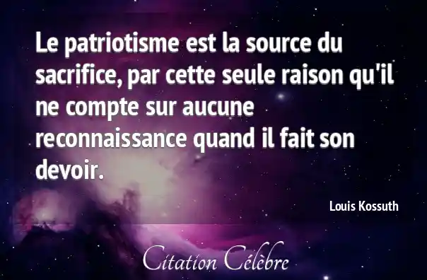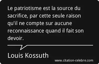 Le patriotisme est la source du sacrifice, par cette seule raison qu'il ne compte sur aucune reconnaissance quand il fait son devoir.