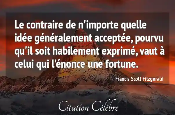 Le contraire de n'importe quelle idée généralement acceptée, pourvu qu'il soit habilement exprimé, vaut à celui qui l'énonce une fortune.