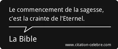 Le commencement de la sagesse, c'est la crainte de l'Eternel.