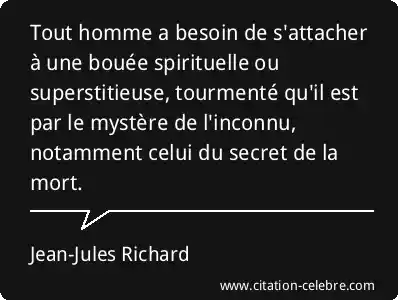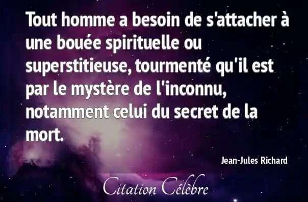 Tout homme a besoin de s'attacher à une bouée spirituelle ou superstitieuse, tourmenté qu'il est par le mystère de l'inconnu, notamment celui du secret de la mort.