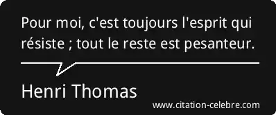 Pour moi, c'est toujours l'esprit qui résiste ; tout le reste est pesanteur.