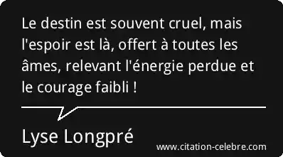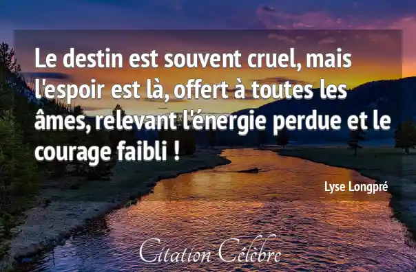 Le destin est souvent cruel, mais l'espoir est là, offert à toutes les âmes, relevant l'énergie perdue et le courage faibli !