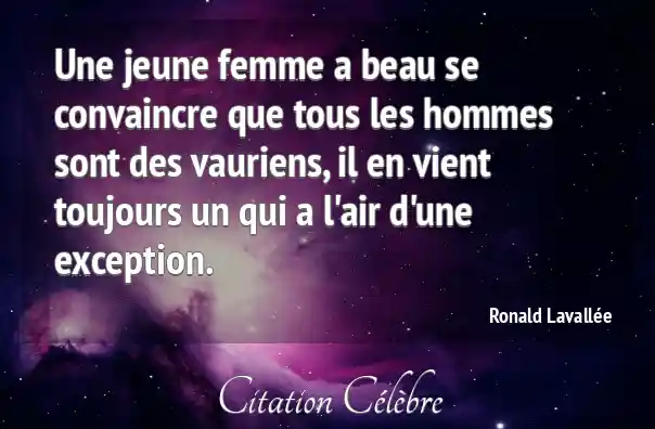 Une jeune femme a beau se convaincre que tous les hommes sont des vauriens, il en vient toujours un qui a l'air d'une exception.
