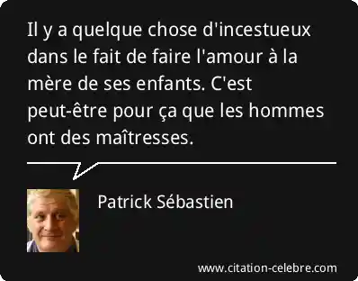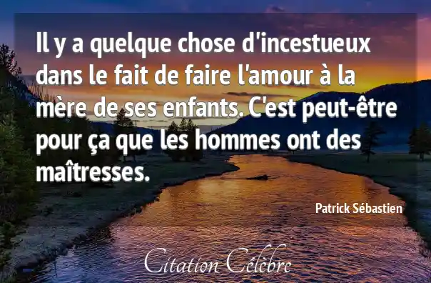 Il y a quelque chose d'incestueux dans le fait de faire l'amour à la mère de ses enfants. C'est peut-être pour ça que les hommes ont des maîtresses.