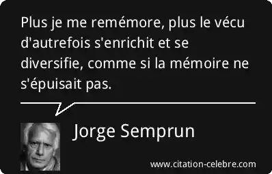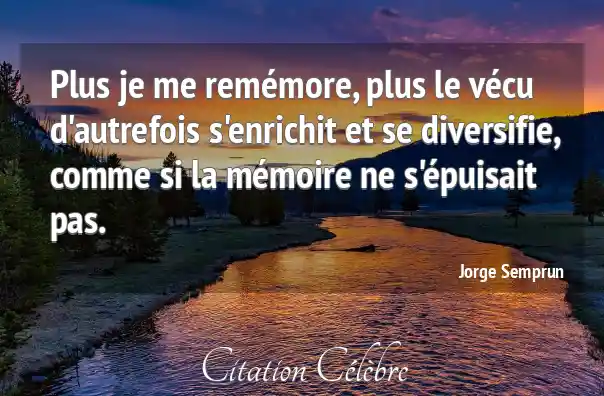 Plus je me remémore, plus le vécu d'autrefois s'enrichit et se diversifie, comme si la mémoire ne s'épuisait pas.