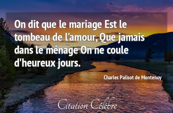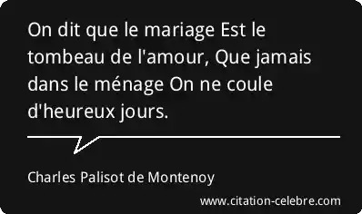 On dit que le mariage Est le tombeau de l'amour, Que jamais dans le ménage On ne coule d'heureux jours.