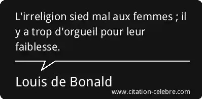 L'irreligion sied mal aux femmes ; il y a trop d'orgueil pour leur faiblesse.