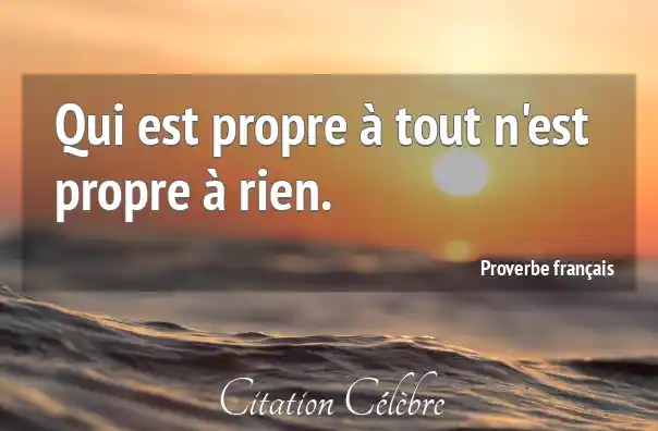 Proverbe  Français Rien : Qui est propre à tout n'est propre à rien....