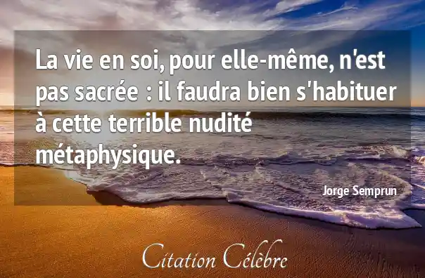 La vie en soi, pour elle-même, n'est pas sacrée : il faudra bien s'habituer à cette terrible nudité métaphysique.