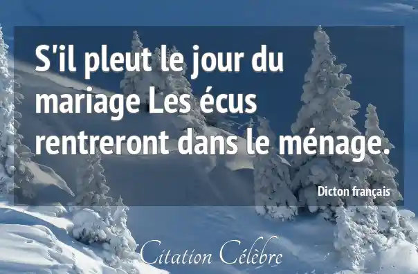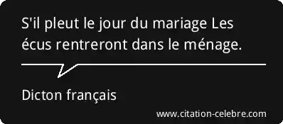 S'il pleut le jour du mariage Les écus rentreront dans le ménage.