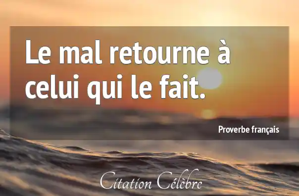 - Ce proverbe affirme, au sens strict, qu'une action malveillante ou nuisible (le « mal ») reviendra physiquement ou directement affecter la personne qui l'a initiée (celui qui « le fait »).