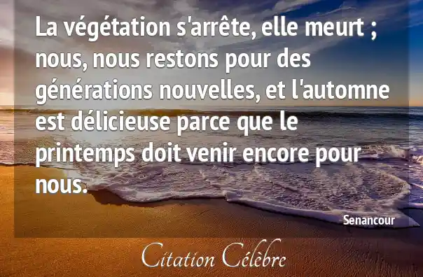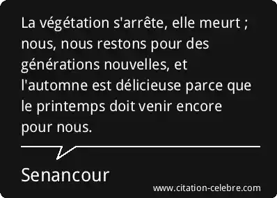 La végétation s'arrête, elle meurt ; nous, nous restons pour des générations nouvelles, et l'automne est délicieuse parce que le printemps doit venir encore pour nous.
