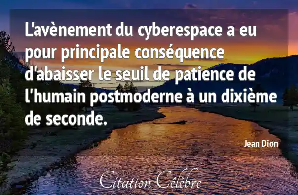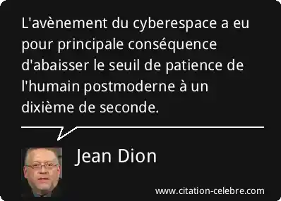 L'avènement du cyberespace a eu pour principale conséquence d'abaisser le seuil de patience de l'humain postmoderne à un dixième de seconde.