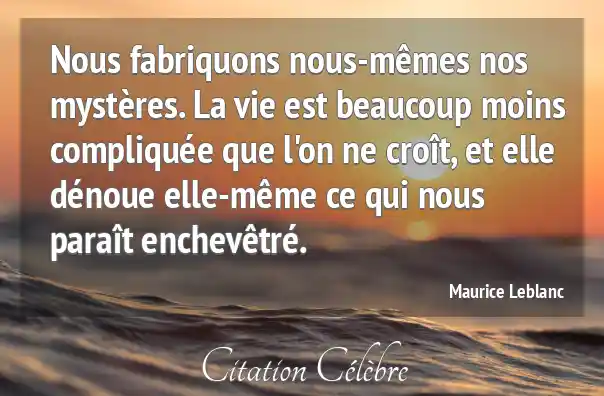 Nous fabriquons nous-mêmes nos mystères. La vie est beaucoup moins compliquée que l'on ne croît, et elle dénoue elle-même ce qui nous paraît enchevêtré.